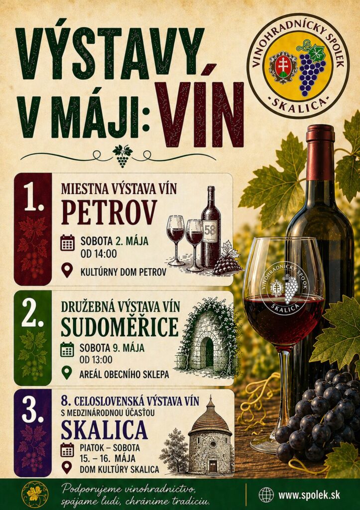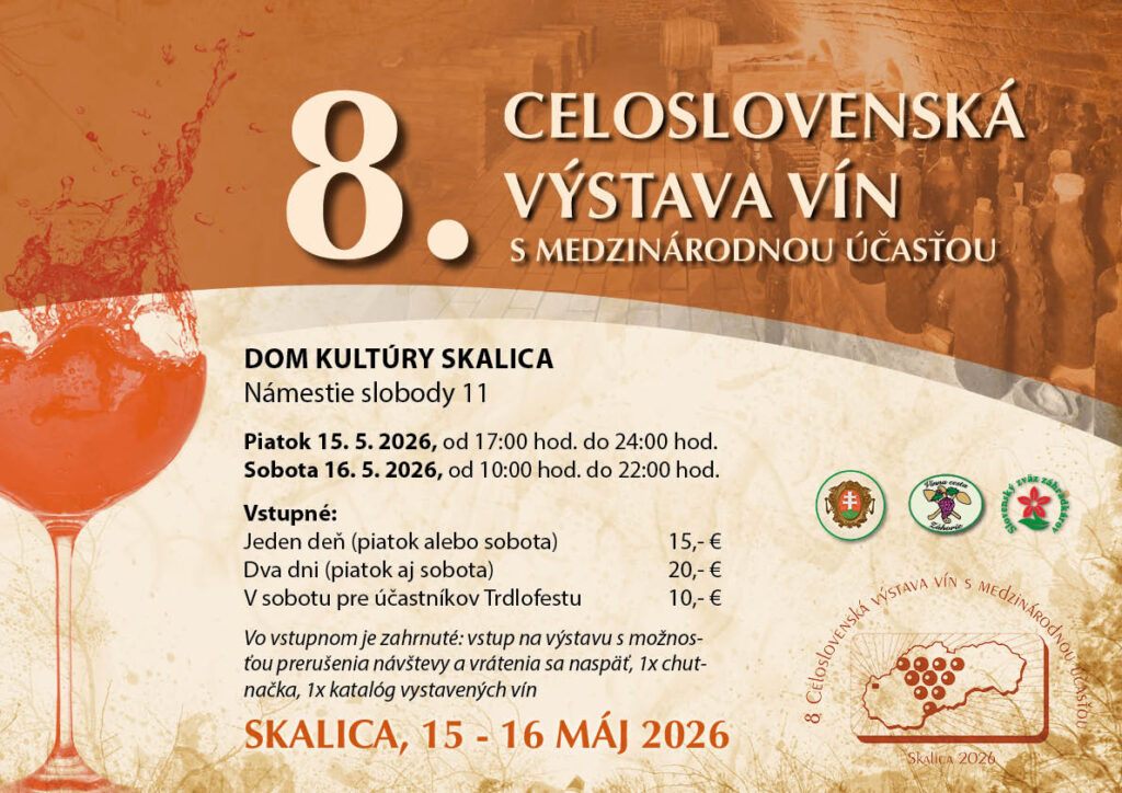 Srdečne Vás pozývam na 8. ročník Celoslovenskej výstavy vín s medzinárodnou účasťou, ktorá sa uskutoční 15. – 16. mája 2026 v Dome kultúry v Skalici.